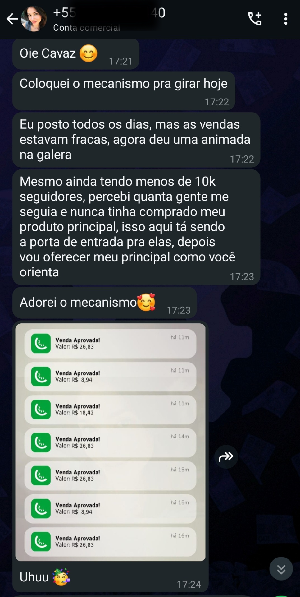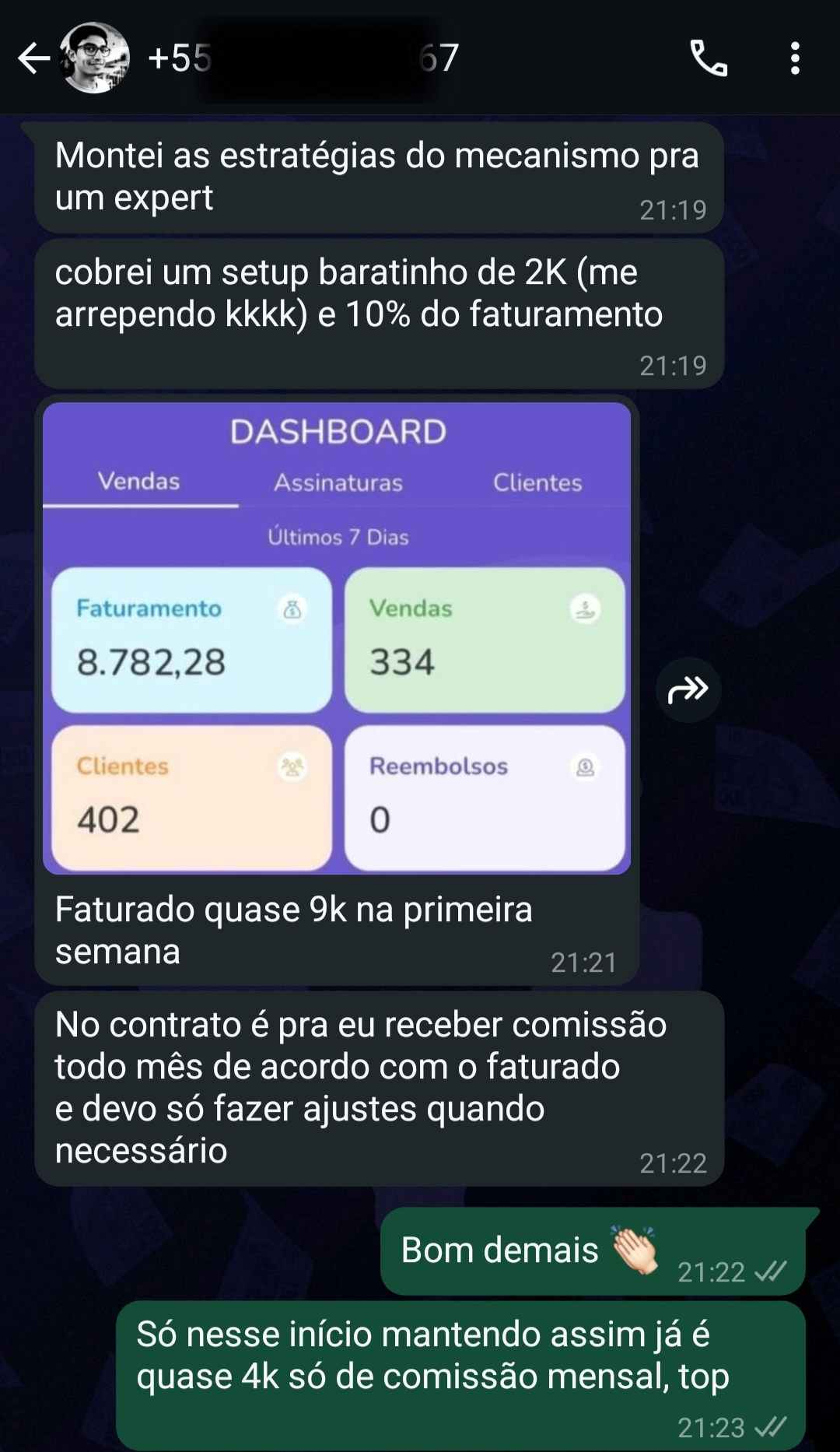 É aqui que você entra. Você aprende como funciona o Mecanismo de Conversão Rápida e faz uma parceria com esse profissional. Você aplica o mecanismo, faz vendas e fica com uma boa comissão desse lucro.